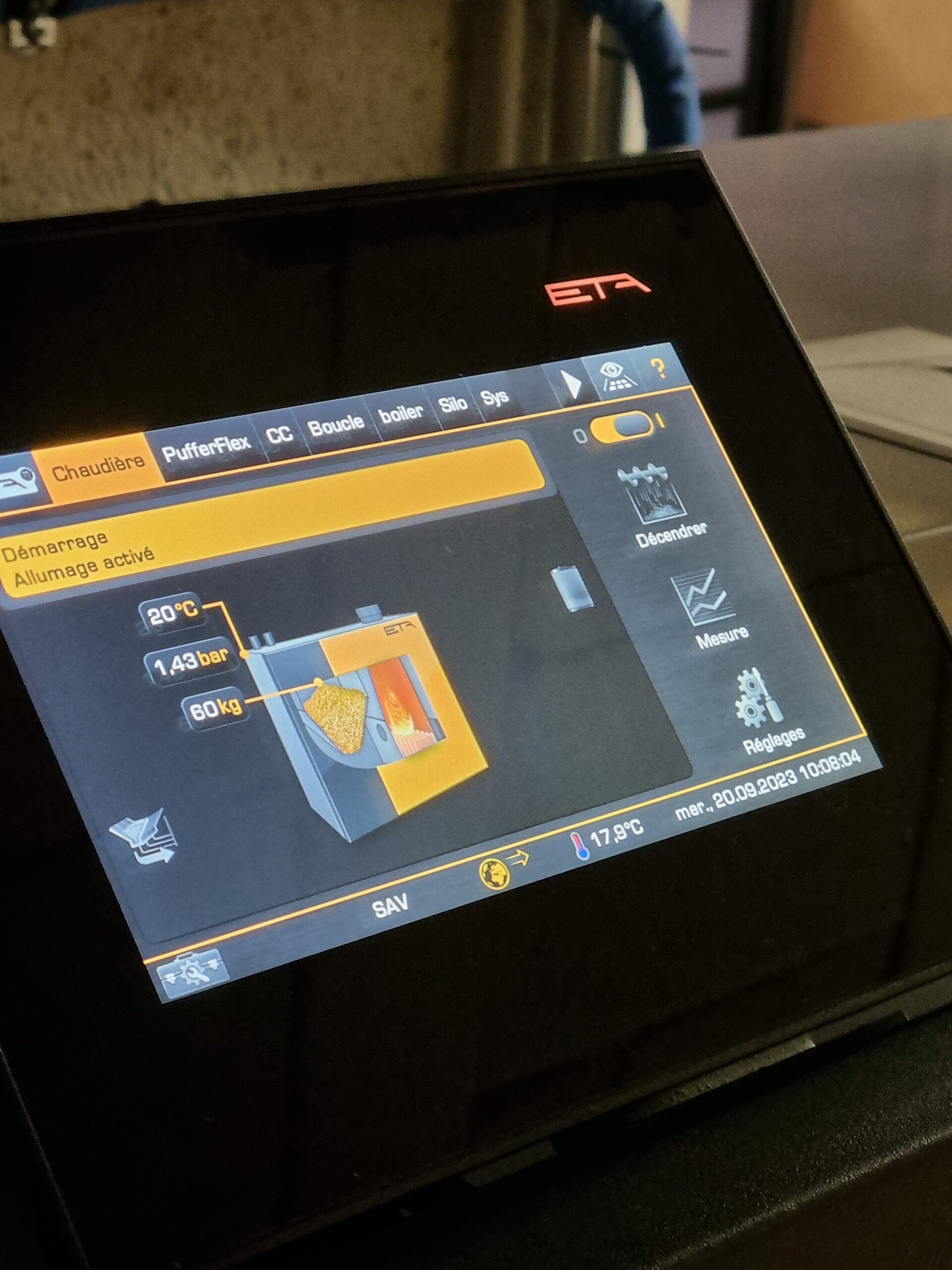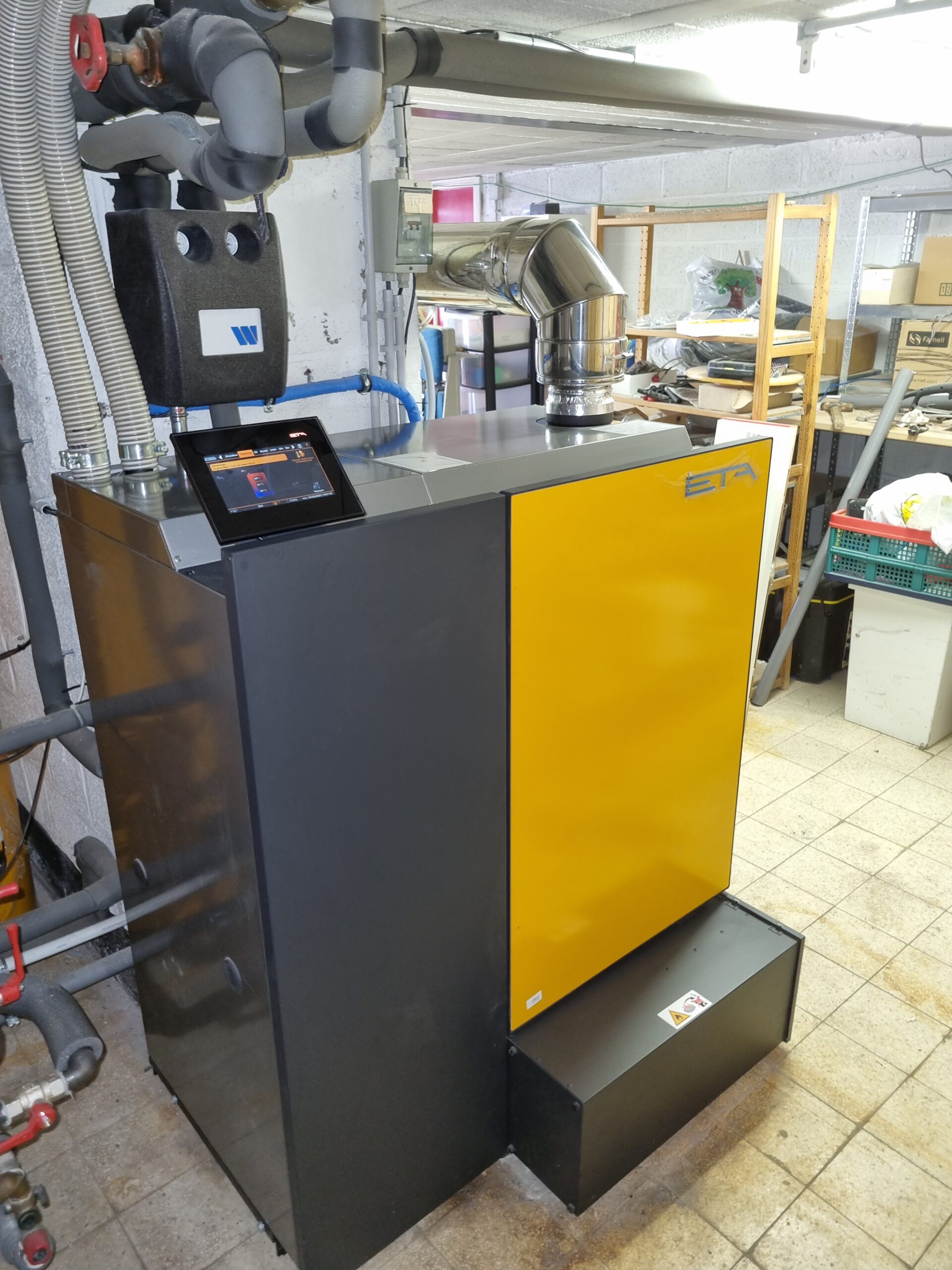 Installation d'une chaudière aux pellets ETA PC 20kw avec silo à remplissage manuel et ballon tampon