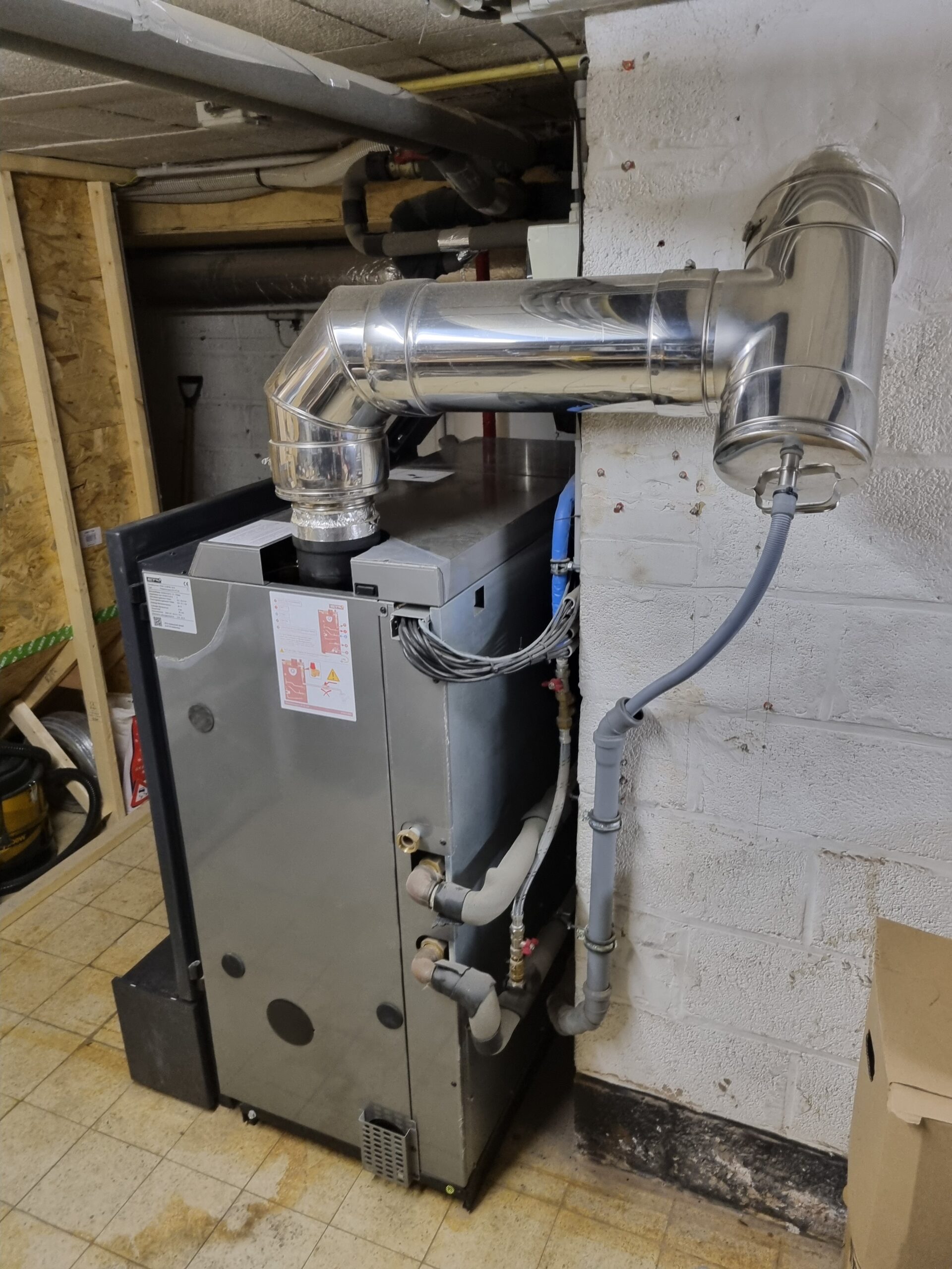Installation d'une chaudière aux pellets ETA PU 15kW avec ancienne chaudière au mazout gardée en back-up